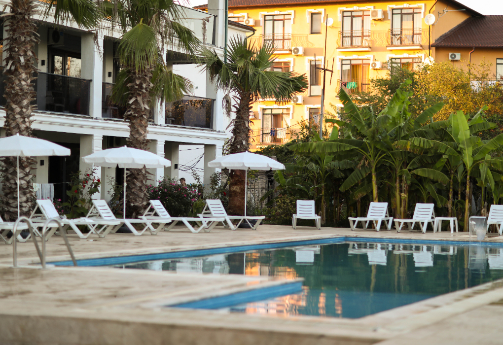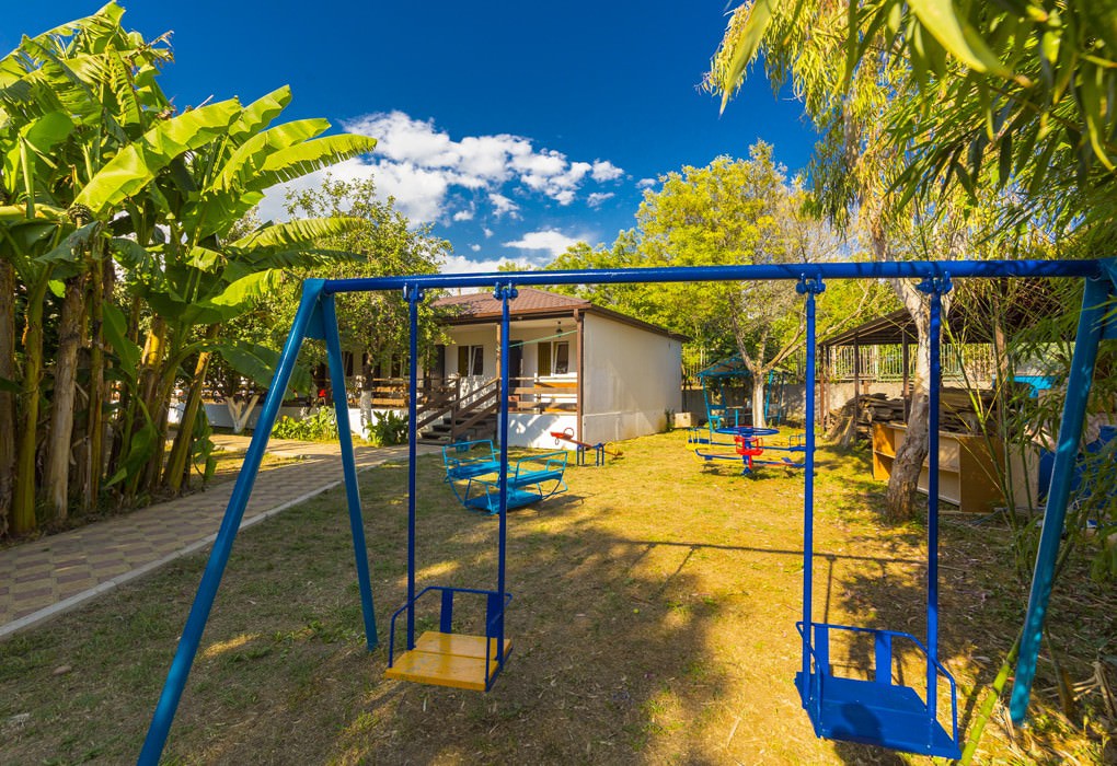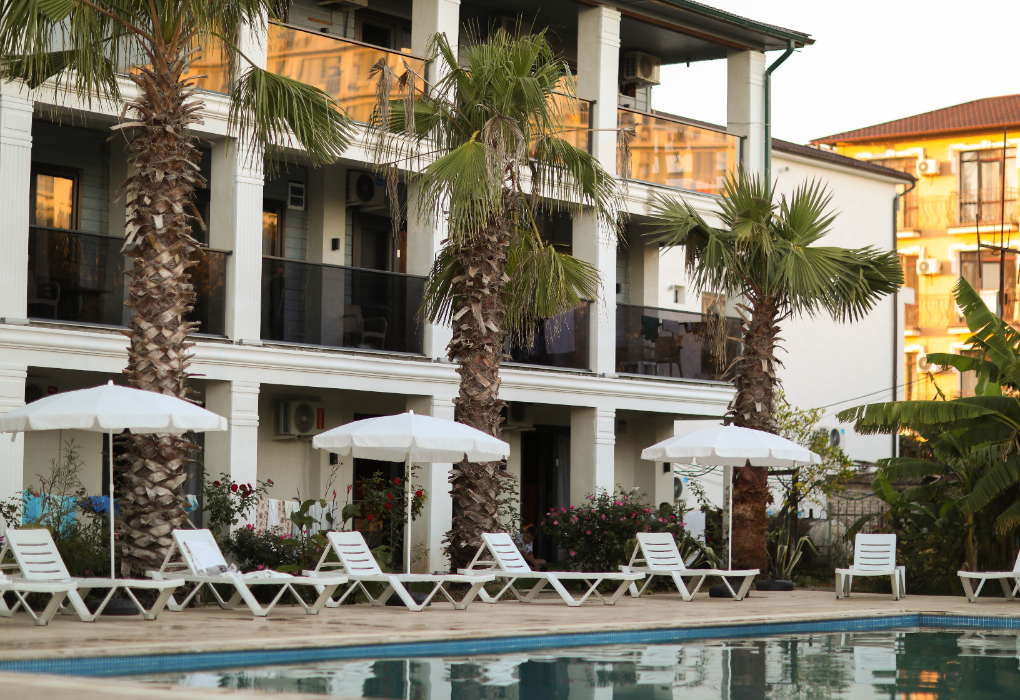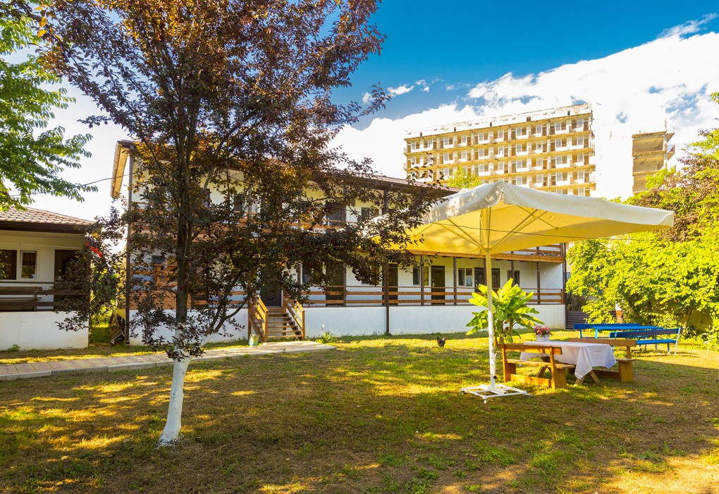 Номера, рассчитанные на 2-3 человека, хорошо оборудованы: санузел с душем, кондиционер, холодильник, телевизор. На первом этаже имеется гладильная комната. С просторных деревянных балконов открывается впечатляющий вид на море и зелень.