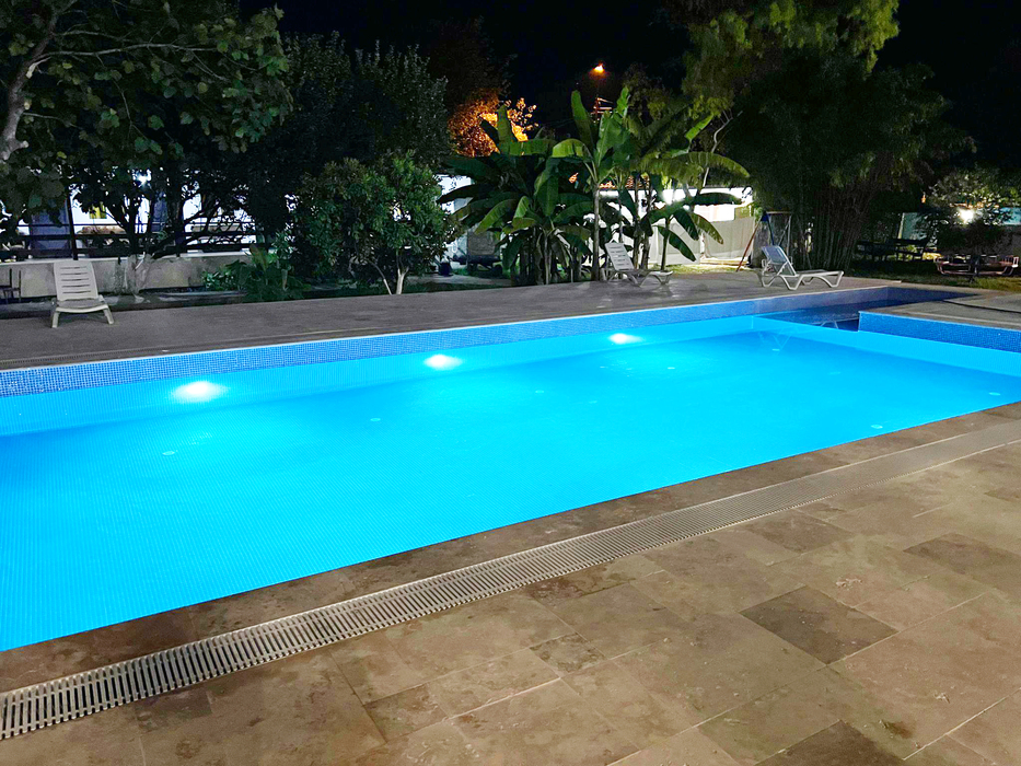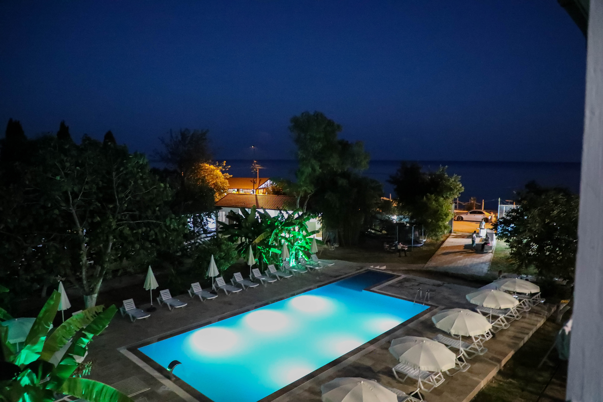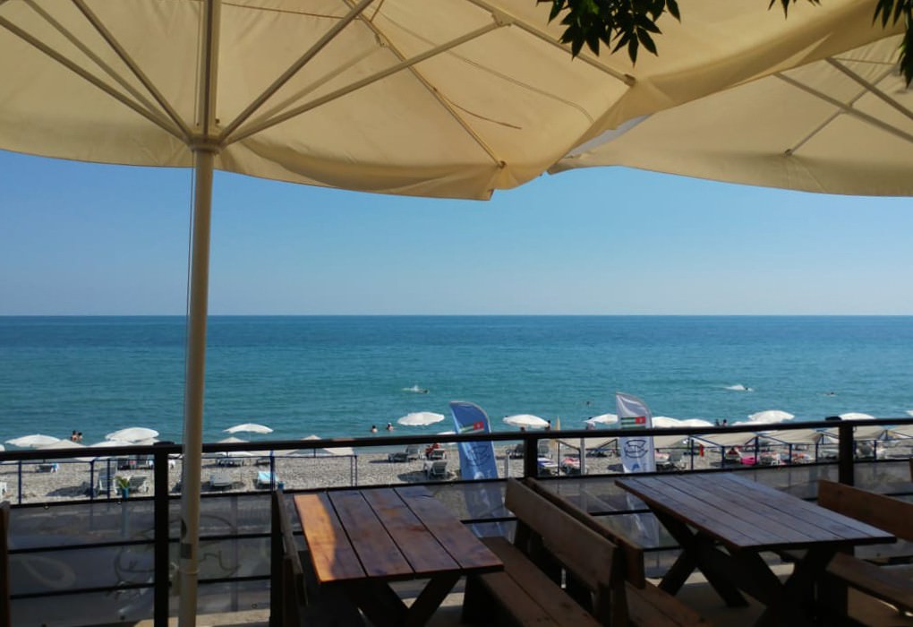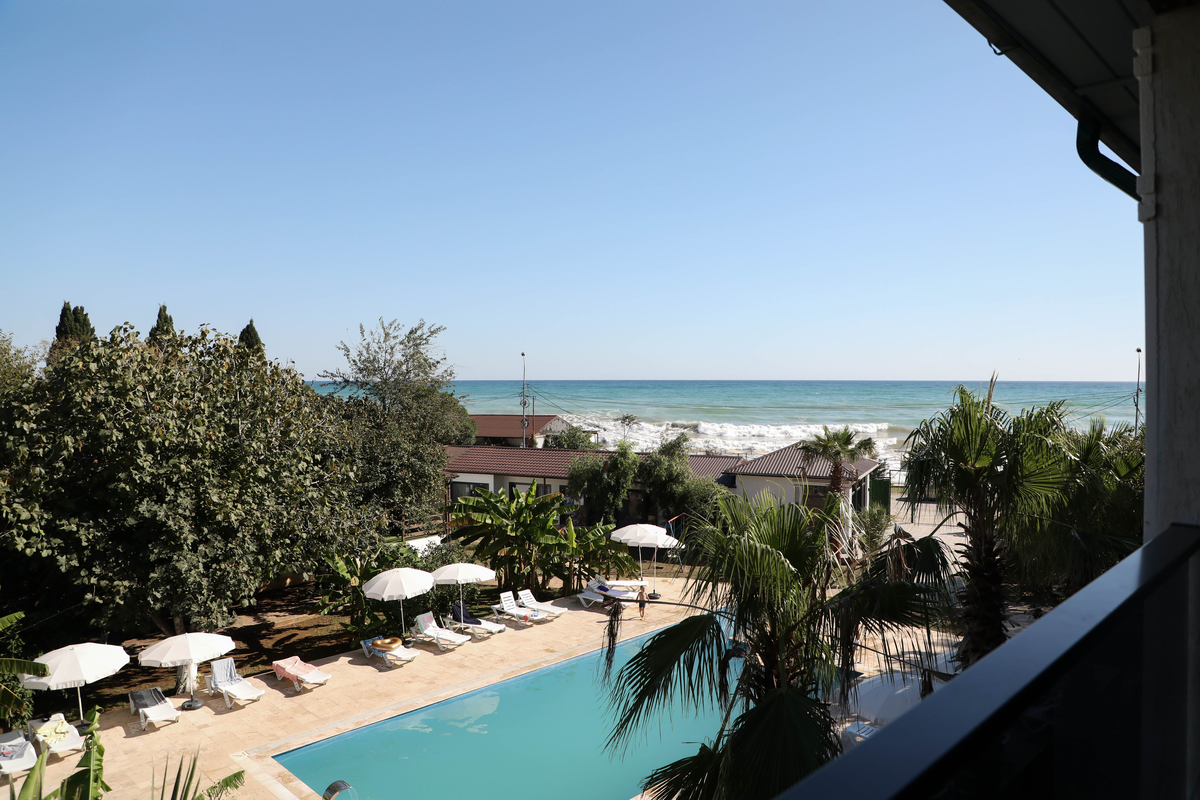 Пляж находится в 20 метрах от здания. Это песчано-галечный пляж, с крупной галькой на берегу и мелким песком на дне. Вода здесь прозрачная и теплая. Есть зонтики, шезлонги и другие удобства для отдыха.