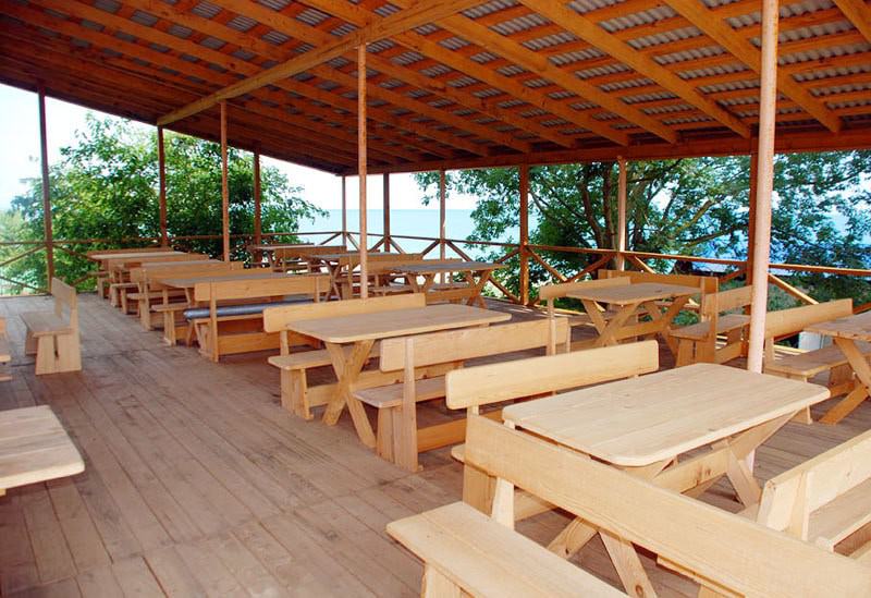 На территории отеля есть автостоянка, сувенирный магазин, детская игровая площадка, магазин с мороженым и напитками, а также столовая с деревянными столами и скамейками.